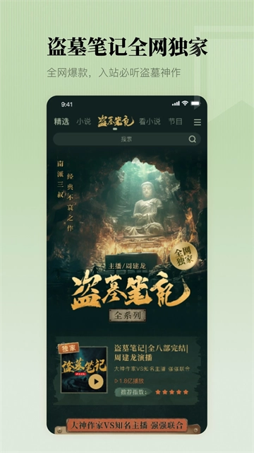 全网独家上线《东北出马仙》《盗墓笔记》《世子无双》《藏海花》,海量优质好书任你畅听。