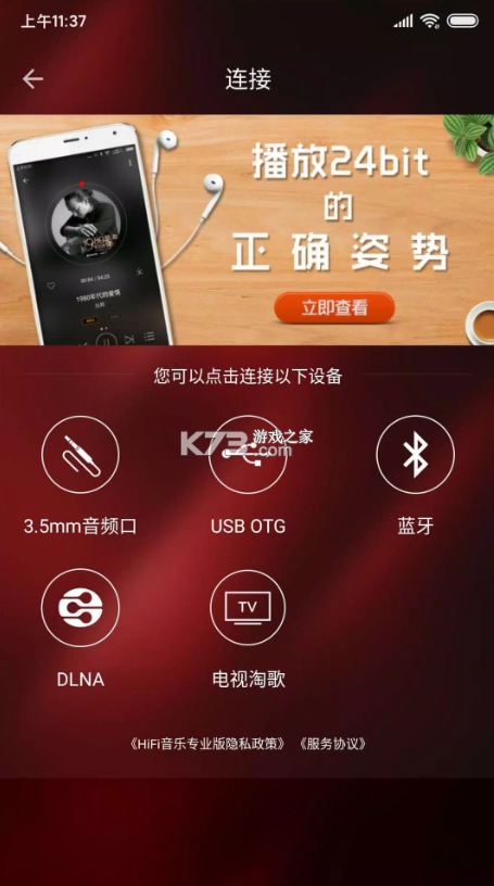 24bit高解析度音乐输出:通过HIFI音乐专业版软件,您可以将手机作为高解析度音源连接到音响设备,实现24bit高解析度音乐的输出,让您享受更精准、逼真的音频体验。