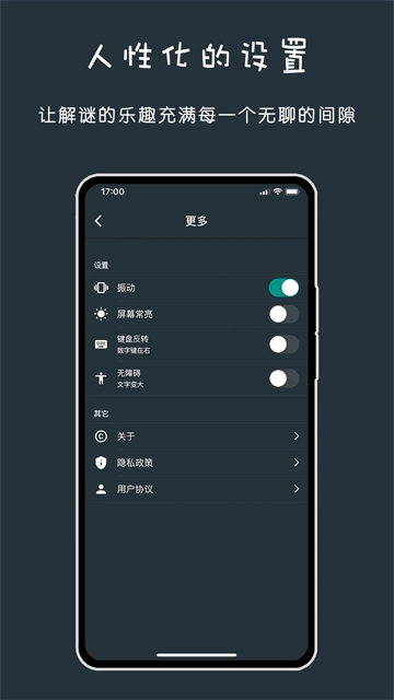 黑色数学是一款数学习题挑战软件,为用户提供了140道数学思维训练题,内含规律题、逻辑题、计算题等应有尽有,难度各不相同,有趣而不无聊,每一关只有唯一的答案,答对了会有更难的关卡等着你。软件界面简洁,还支持多种语言切换和离线答题,让用户可以在各种零碎的时间前来挑战,无论是坐车还是排队等情况下都能够打开软件训练,消磨时光,随时锻炼数学思维。用零碎的时间扩展你的智力极限,感兴趣的小伙伴快来吧。