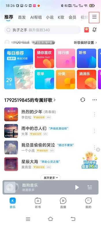 酷狗音乐可以为用户带来好听的歌曲,有着超多歌手入驻平台直播,每天都有超多歌手在平台中展示自己的歌技。
