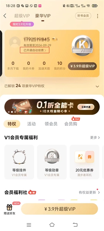 3、继续点击方框中的【已开通自动续费】文字,前往到一下步的页面中。