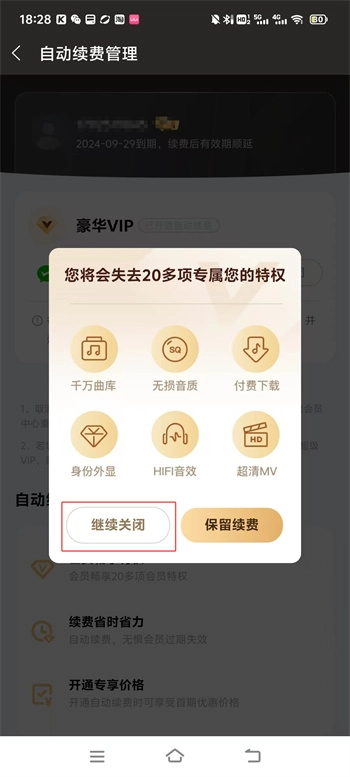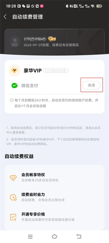 6、之后再次继续点击【继续关闭】就可以成功的将自己所续费的会员给最终成功关掉。