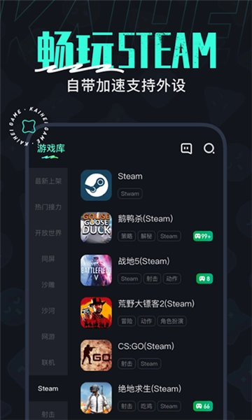 随时随地,无需,不占内存,海量游戏畅玩!Steam、鹅鸭杀、动物派对、GTA5、和平精英、奥特曼进化格斗、绝地求生、全面战争模拟器、地平线4、看门狗、方舟、火影忍者究极风暴4、赛博朋克2077、正当防卫系列、荒野大镖客2、育碧全家桶、模拟人生4、古墓丽影系列,策略类、休闲类、角色扮演类、对战模式等网游3A单机大作通通都有。