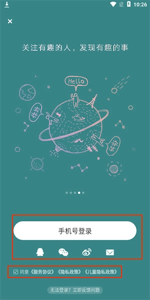 ### 一、新手指引 1. 在本站完成老福特lofter的安装后,打开应用,可选择通过QQ、微信、微博等方式进行登录。