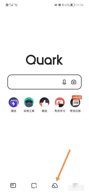 首先,进入夸克主页,然后点击右下角的图标按钮。