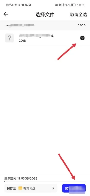挑选出想要保存的文件,在该文件后方的方框里打上勾,接着点击“转存网盘”按钮,这样就能把文件保存到个人网盘中了。