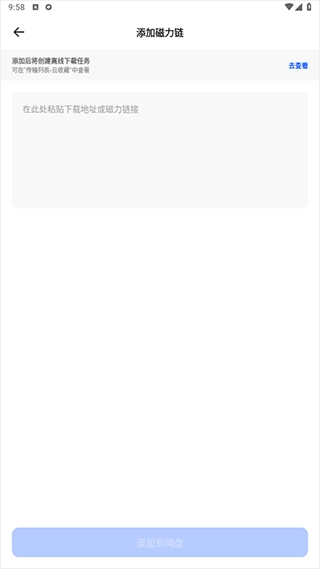 2、接下来,在添加磁力链接的界面中输入链接,就能将其添加至网盘。