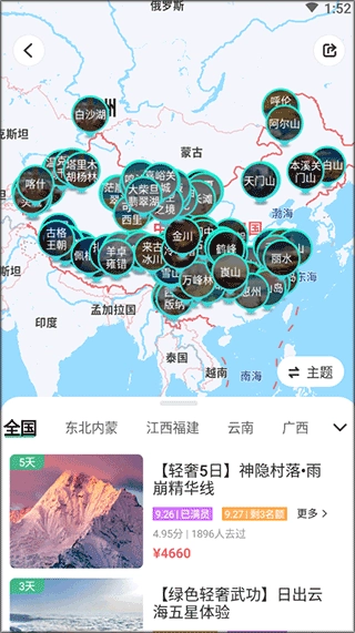 3、轻点右上角的旅行地图,即可查看全国的旅游打卡地点。