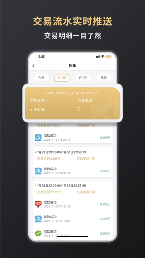 3、进入收款记录页面,映入眼帘的是当天的收款笔数、总金额以及收款明细,如此一来,对账就变得便捷了。