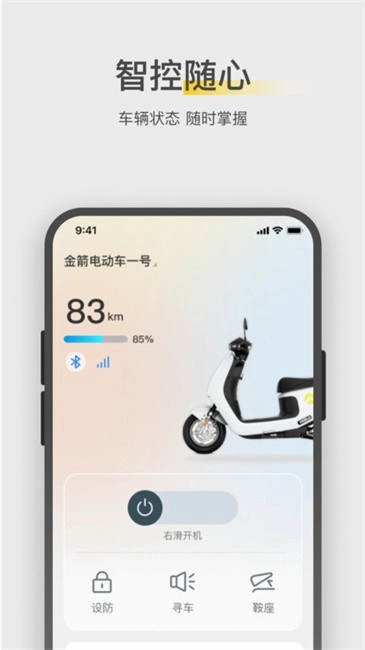 金箭智行的最新版本搭载了可与电动车相连的智能车控平台。借助这款软件,你能够在手机上远程管理电动车,还能通过车联网系统同步查看车辆的使用状态,从而实现对电动车的及时监管。
