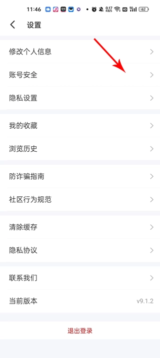 3、进入设置页面,往下滑动,找到【账号安全】;