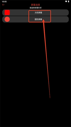 2. 打开软件并进入,在其中选择屏幕形状,可选择方形或圆形。