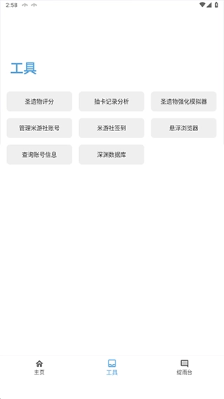 应急食品轻松连接用户的游戏账号,帮助用户轻松检查自己的圣遗物,软件中还可以帮助用户体验模拟抽卡服务,帮助用户查看自己今日是不是欧洲人,软件中还将会为用户提供超多的功能服务,让用户能够在平台中获得更多辅助工具,帮助用户获得更多服务。