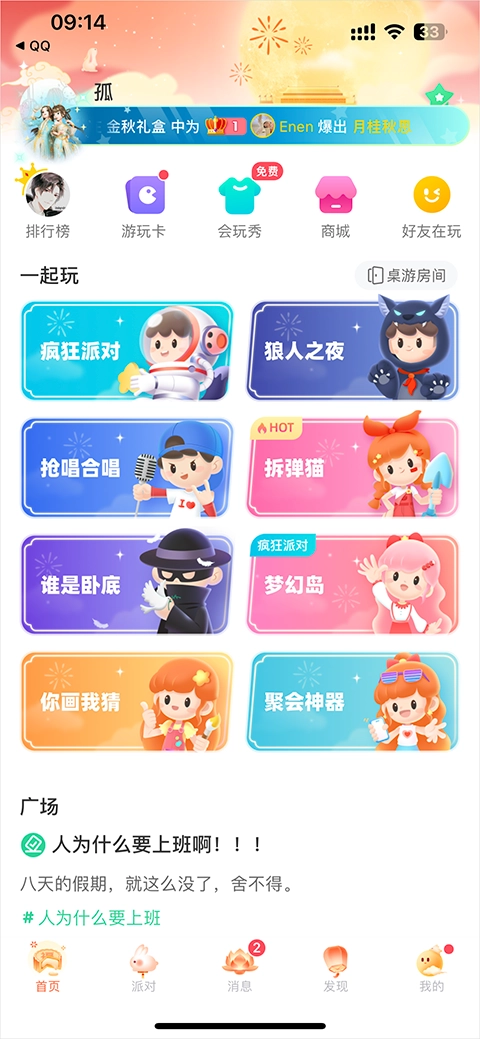 狼人杀、谁是卧底、你画我猜、坦克大战、消方块、五子棋、疯狂飞行棋、不谢牌等更多小游戏