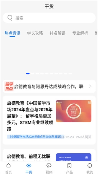 2、点击下方的干货,在学长攻略中将地区划分为多个小模板,从学生角度来看到学校。