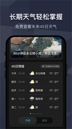 2、长达40天的超长预报:提供升温或降温趋势,以及降雨或降雪趋势,让您换季无忧。