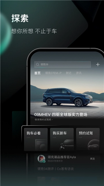 Lynk&Co领克汽车,属于你的一站式爱车服务平台,在这里不仅有新鲜的汽车资讯,掌握你的汽车动态,解锁学习更多爱车知识,随时随地远程控制座驾,车主服务一键触达!还能以车会友参加潮流玩咖社区交流,车主活动嗨不停!探索社区,分享记录生活中的每个精彩瞬间,结识好玩有趣的小伙伴们~一切精彩,尽在Lynk&Co。