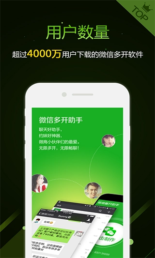 微信多开助手是一款软件多开的应用,用户们可以在软件中同一时间开启多个软件,能够同时使用多种微信,让用户们体验多开的实用功能,操作简单,也不会泄漏任何的个人信息,非常安全,不需要再为不能登入多个账号感到烦恼了,快起来试试看吧!
