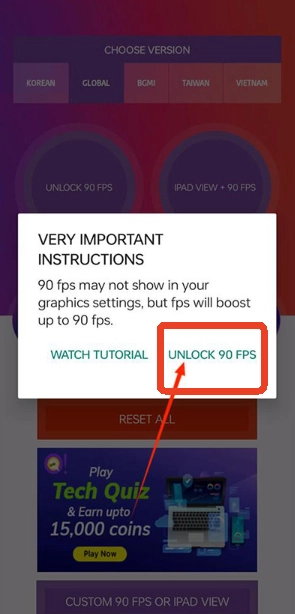 用户打开应用后,可点击“GLOBAL”选项,随后选择“解锁90FPS”功能。