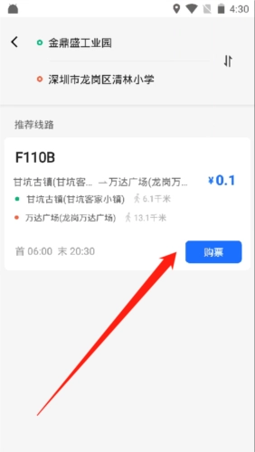 选好出行路线后,点击界面右下角的“购票”按钮,就能完成公交的预约操作。
