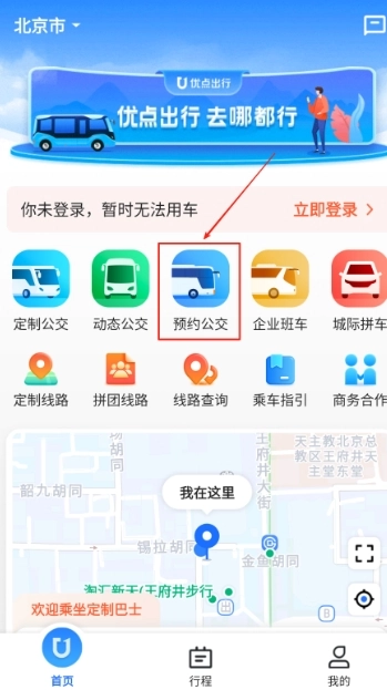 在首页中,找到并点击“预约公交”选项