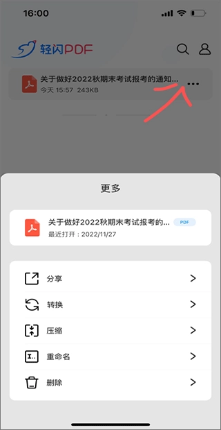 点击界面上的三点图标,就能对文件执行压缩、分享、格式转换等多种操作。