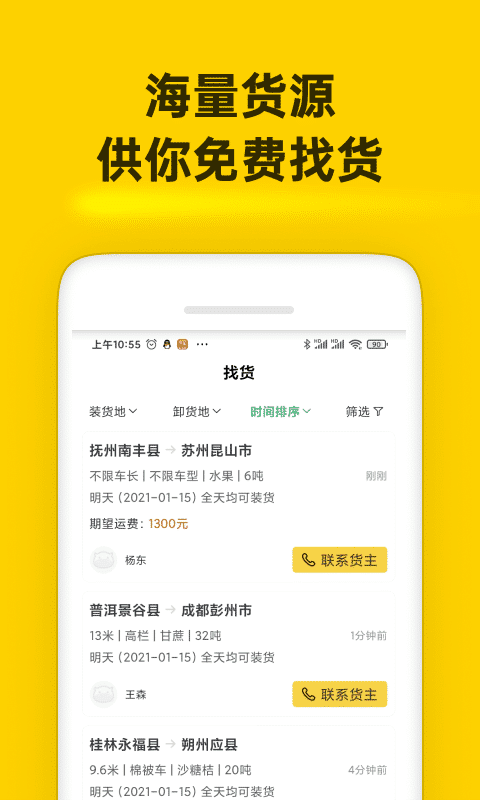 发布车辆的频繁运行路线、查看寻货信息、联系货主、接收订单等服务,帮助司机快速配送。