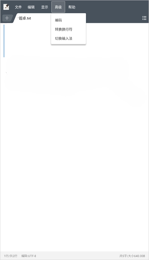 高阶功能模块支持对文本开展编码处理、调整换行格式以及切换输入方式等操作。