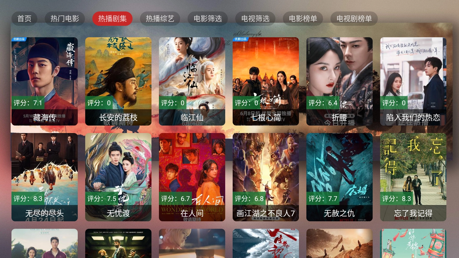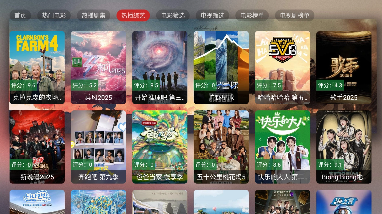 在首页顶部的部分栏目中,能看到电视剧、电影和综艺等类别。