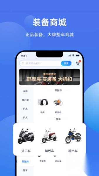 装备商城:这里能一站式购齐摩托车相关的各类装备和配件,全面满足骑行过程中的所有需求。