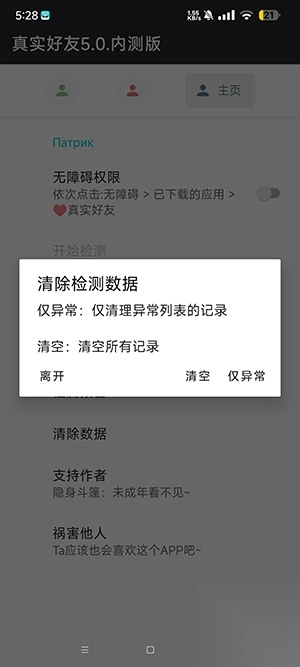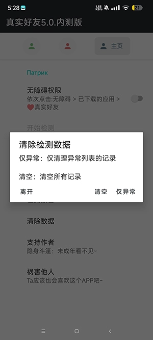 这款应用的权限设置很简单,只有一个无障碍权限,像联网、读取文件、通话这类权限它一个都没申请,大家可以放心使用。接下来给大家看看我测试的实际效果,后面会附上检测好友状态时涉及的权限说明。(补充一句:虽然有些基于root的XP框架也能识别对方是否为好友,但这款应用的优势在于,它不仅能检测出非好友关系,还能进一步判断出是否被对方拉黑了。)