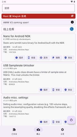 应用界面呈现的功能组件并非由该应用或Magisk开发维护,用户在挑选组件时需认真查看各项说明,以保障所选组件的安全可靠及适配性。