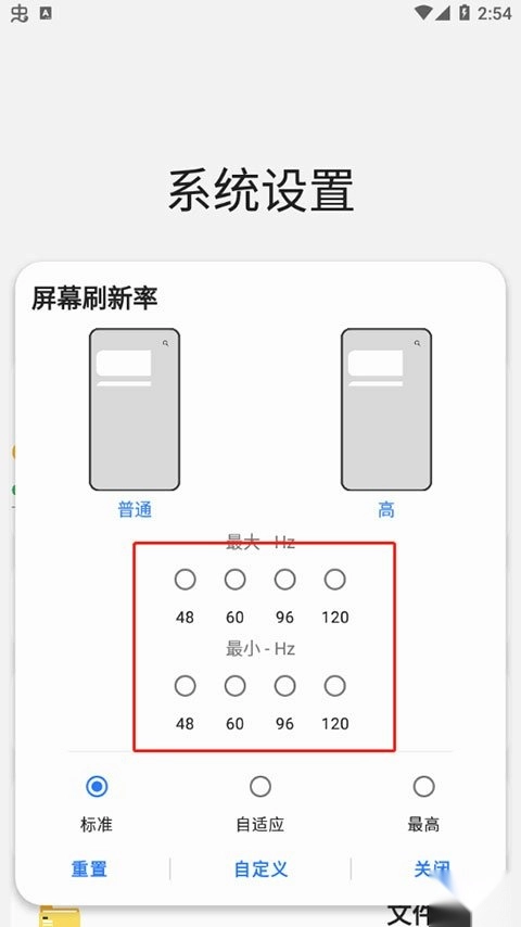 这个界面支持对屏幕刷新率进行调节,可选档位包括30、60、90和120,其中30是最低设置选项。