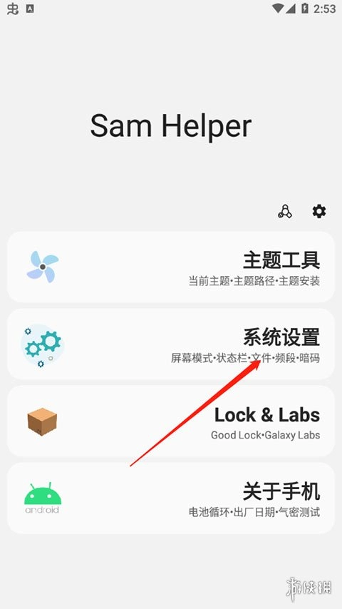 打开SamHelper应用,接着依次点击进入“系统设置”选项,再从中找到并进入“屏幕模式”,最后选择“影院模式”即可。