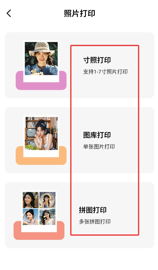 进入照片打印界面后,你能依据自身需要挑选不同大小规格或者滤镜风格之类的打印设置选项。