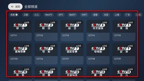 然后软件就会为你展示出所有的频道,点击就能开始观看;