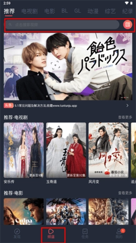 若想查找自己感兴趣的剧集、电影或综艺节目,可在“频道”页面的搜索栏中进行搜索操作。
