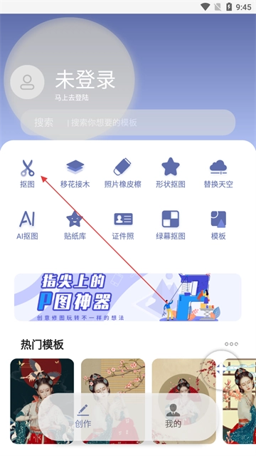 打开软件首页后,点击【抠图】功能图标,即可启动抠图操作流程。