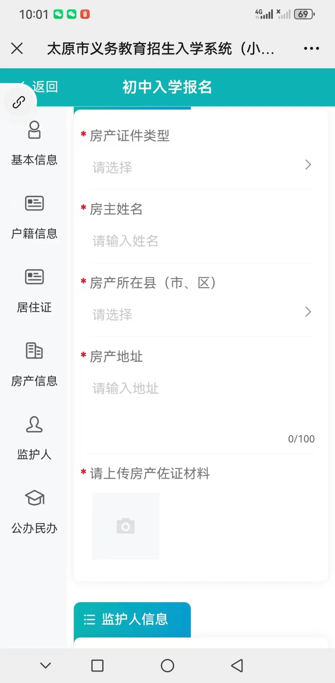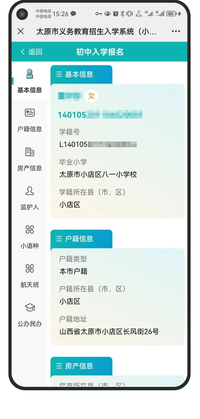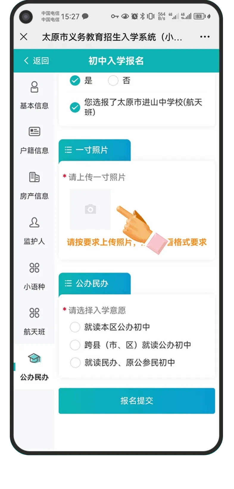 进入报名系统后具体操作流程(下面以报名太原市行知宏实验中学校为例:)