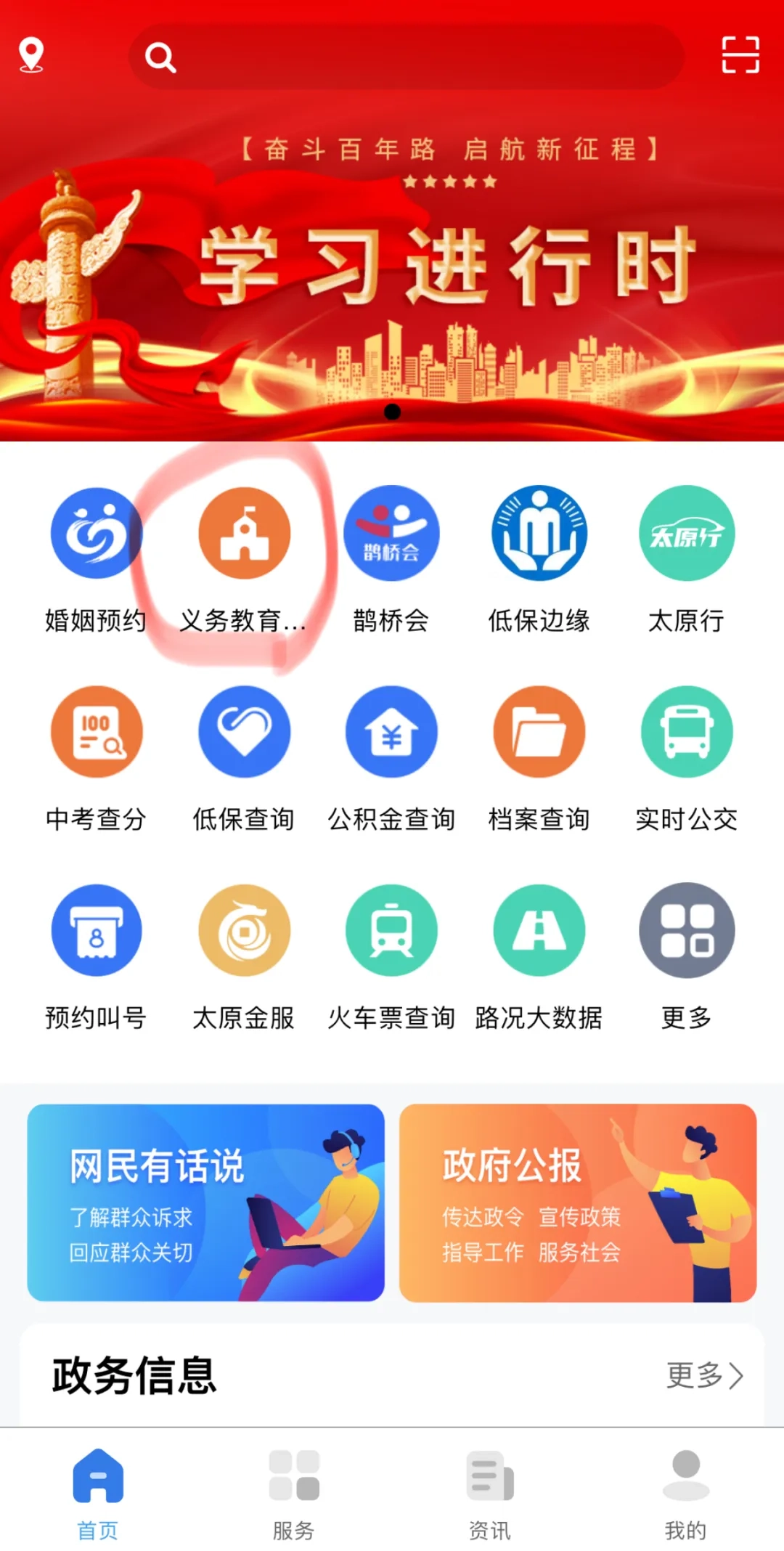 登录“我的太原”;