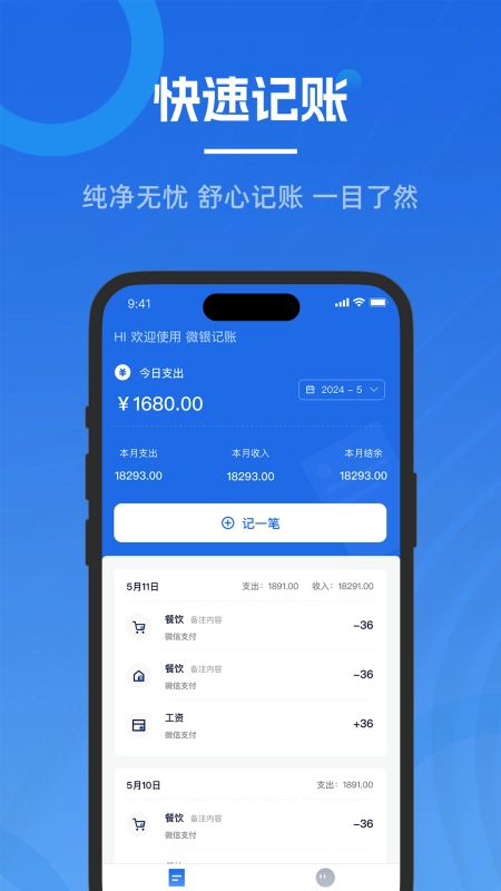 微银记账的界面设计清新简洁又可爱,全程打扰,启动速度也很快,能让用户享受到流畅的记账体验。