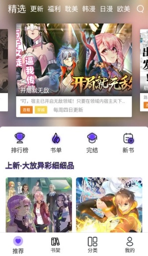 提供了多种漫画类别,您可以依据自己的喜好选择不同类别,比如流行漫画、新动漫和已完结漫画。