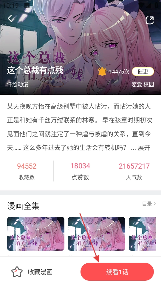 进入播放页面后,就能观看《这个总裁有点残》第1话的内容了。