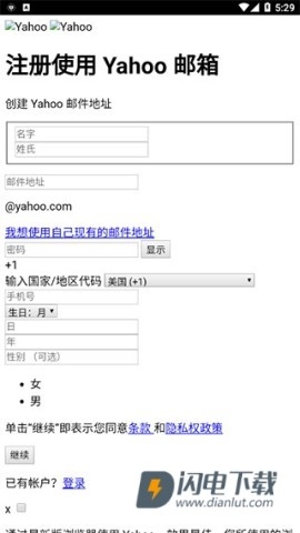 启动雅虎邮箱的应用程序后,找到并点击“创建账户”的选项,即可开启新账号的注册流程。
