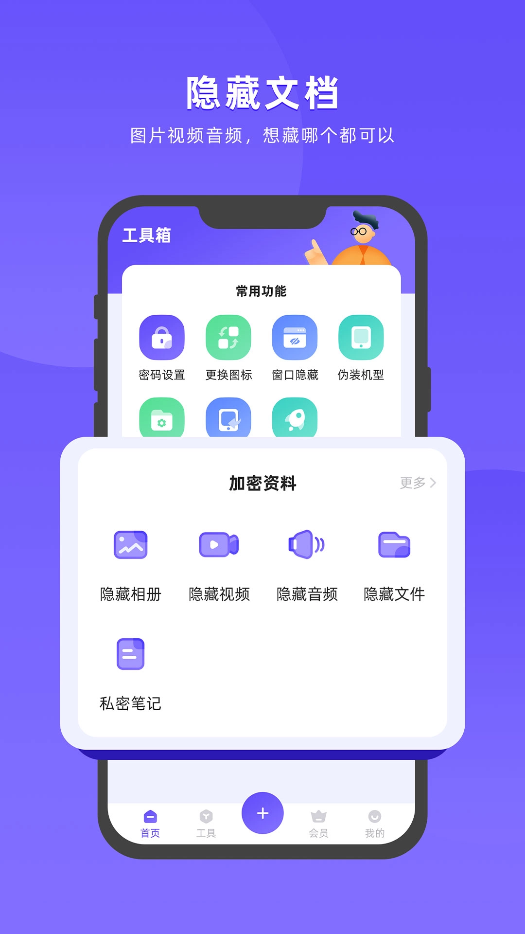 应用隐藏是一款能打造独立手机空间的软件,就像为你准备了一部全新的手机。在这个独立空间里,系统会自动生成一个私密且安全的专属区域,你可以在这里存放相册、视频、音频、文档等各类资料。它没有储存空间的限制,并且支持设置密码锁来保障内容安全。