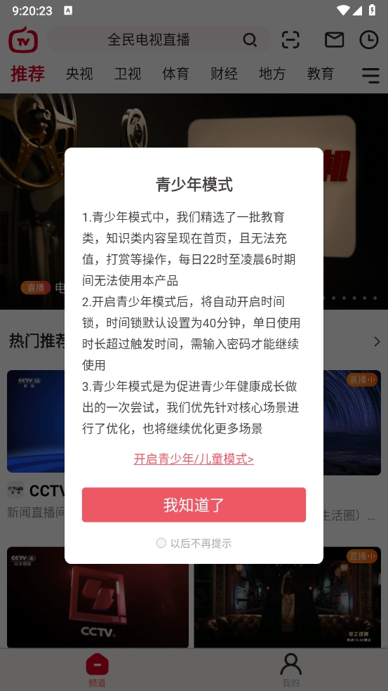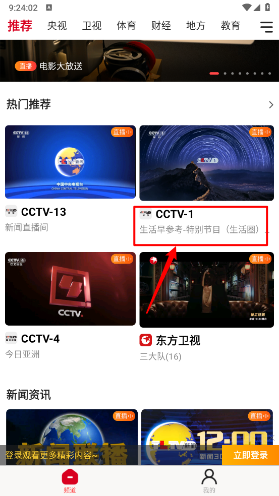 频道的分类很清晰,像新闻、体育、影视、少儿这些类别都有,能让用户快速找到想看的内容。