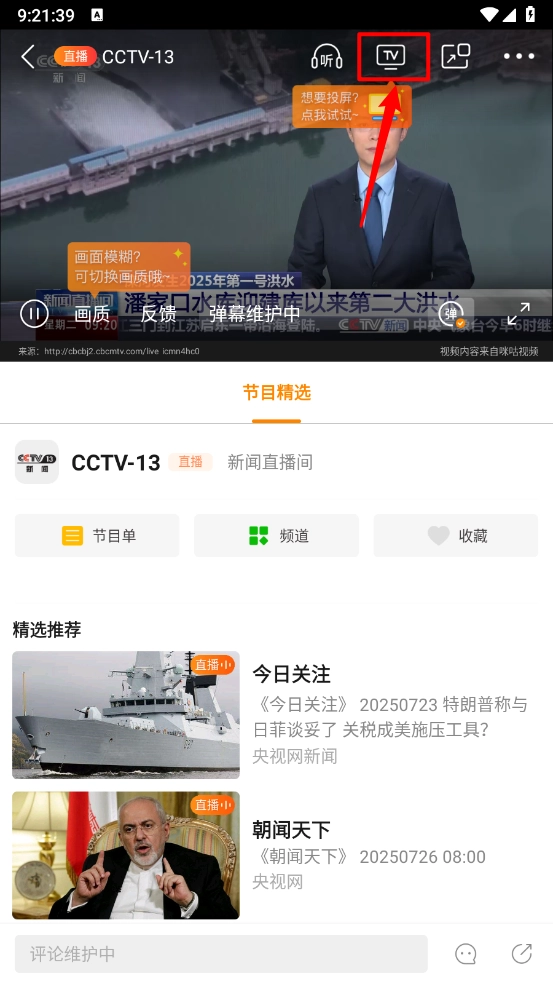 一键打开进入播放详情页,点击"tv"标志。
