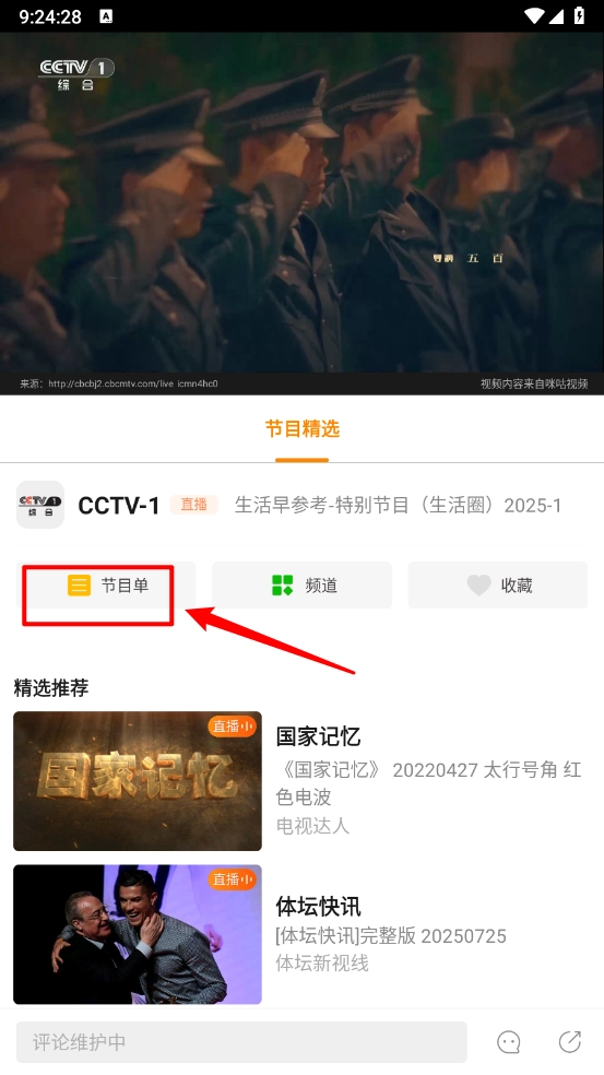 然后在播放页面点击"节目单"。