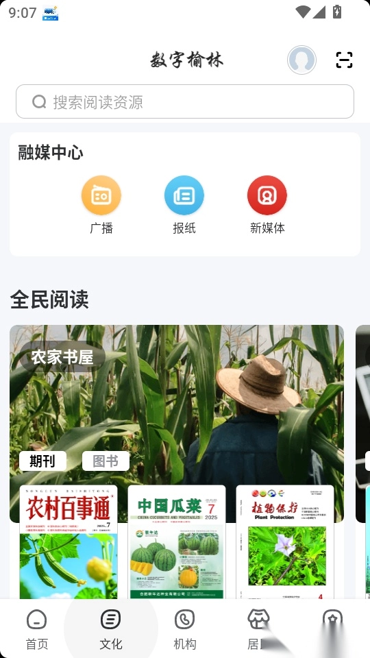 然后进入软件的首页界面,找到底部菜单栏里的“文化”功能按钮