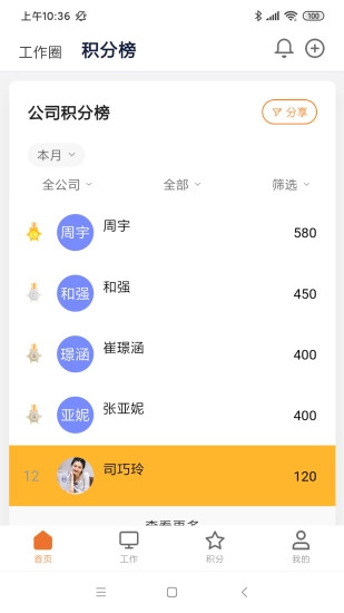 积分互通:当员工完成考勤打卡、提交请假申请、撰写工作报告等日常行为后,系统会依据预设的积分计算规则,自动为其进行积分的增加或扣除操作。这种方式能够对员工的行为给予即时激励,同时有效提升统计工作的效率。